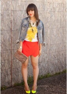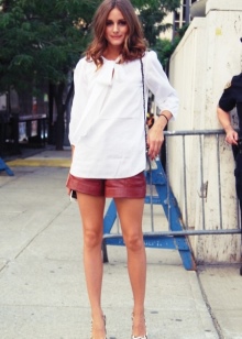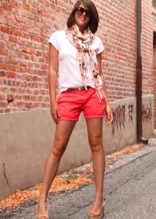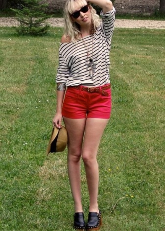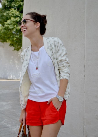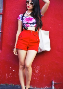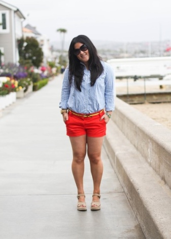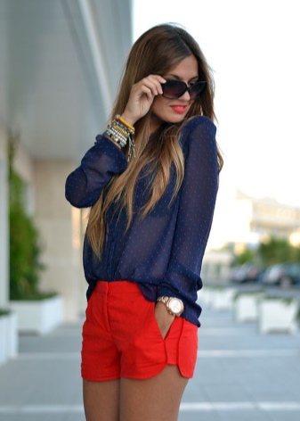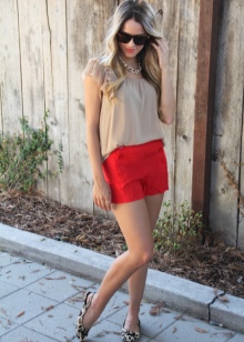 Red shorts are perfectly combined with blouses and t-shirts of a free cut, while neutral neutral shades should be preferred.