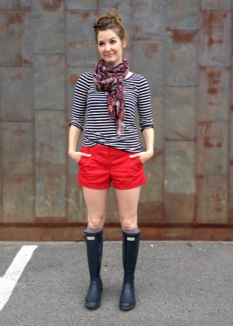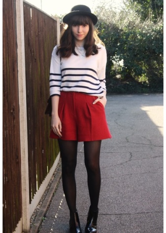 For relaxation, red shorts should be combined with a t-shirt or striped sweater. Many women of fashion like the sea theme.