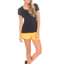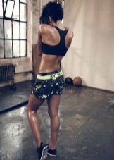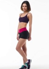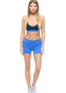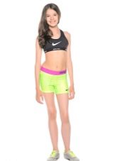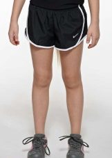 The color scheme of women's sports shorts includes black, blue, white, pink colors. In addition, there are combined models (a combination of gray with black or white looks harmonious). Products with a print are widely represented (abstract, in small specks, with a melange effect). Children's shorts for boys have a restrained color: black, blue, gray, khaki. Models for girls have a more fun color: orange, red, pink, yellow-blue, often decorated with print (strip, cage, rhombuses, abstract pattern).