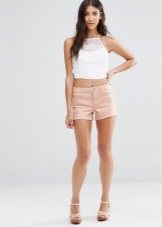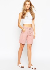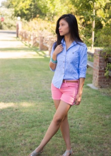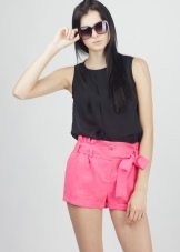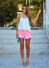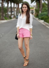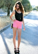 Pink shorts go well with tops, t-shirts, and tank tops. It is worth choosing the top in calm shades. For lovers of classics, the top will be beige, black or white.