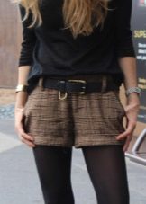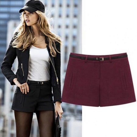 Models of warm shorts are very diverse. So, for thin girls, the style of "flashlights" is popular, which visually adds splendor to the hips. These shorts usually have a low rise and look sophisticated in combination with a stylish belt with a buckle.