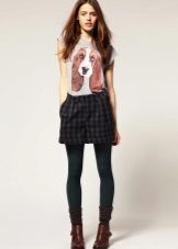 Colored tights can diversify your image by adding piquancy to it. But you need to carefully select them in color to the rest of the clothes, because the mistake made can easily ruin the entire ensemble. Elegant tights to match the shorts. The option, decorated with a print, or cheerful coloring will suit a bold young girl and will be appropriate for an informal atmosphere. It should be borne in mind that bright tights are only suitable for legs of perfect shape.