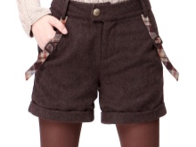 When purchasing shorts for the cold season, carefully approach the choice of material. Naturally, you need to forget about lightweight fabrics, and give preference to wool (things made of camel wool are particularly warm), dense jeans, leather and velveteen. An interesting solution is fur shorts (made entirely of fur or with a noble fur trim). Tweed is also popular as a winter fabric.