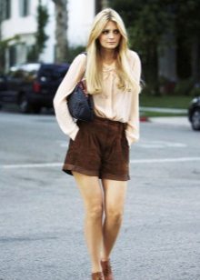 The girl’s lifestyle also leaves its mark on the wardrobe. If you work in a company with a not very strict dress code, then you can easily put on elongated shorts made of tweed or velveteen, carefully considering the top of the ensemble. As an option for urban walks, more bold models are suitable - with patterns or from universal jeans. Leather shorts will help to create a seductive evening look.
