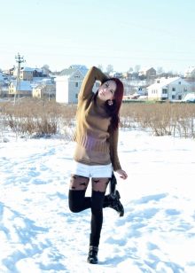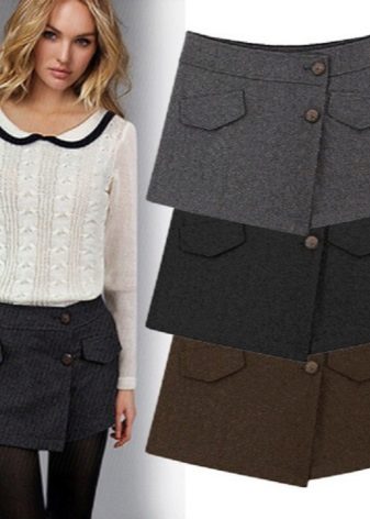The original model is shorts-skirt. Such a thing does not restrict movement, perfectly protects from the cold and always looks unusual and attractive.