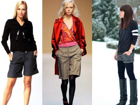 When choosing shorts for the cold season, you first need to focus on the features of your figure. Owners of an impeccable figure will suit all kinds of models. Excessive thinness, a boyish figure will be corrected by not too short “flashlights” shorts or options with lapels. Too thin legs will visually make fuller shorts combined with tights with a large pattern.