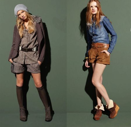 As for shoes, various models are perfectly combined with fall-winter shorts: ankle boots, warm boots, ugg boots, high-heeled boots. Avoid only a combination of short shorts and over-the-knee boots, so as not to cause others to associate with a girl of easy virtue.