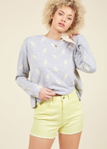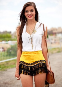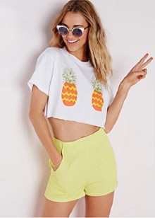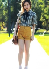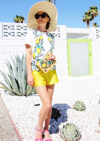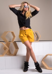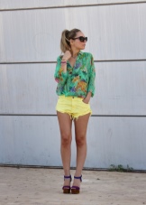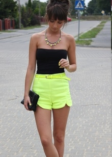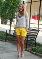 With the onset of summer, most girls strive to take off their dark and gloomy clothes, filling their wardrobe with bright rich colors. Short shorts in a juicy yellow color will help you perfectly cope with this task.