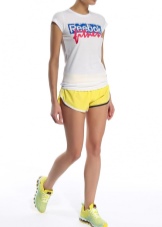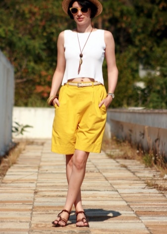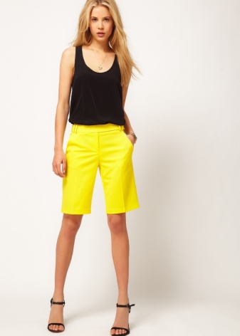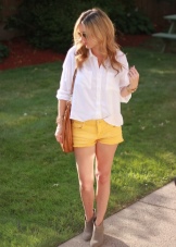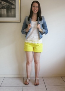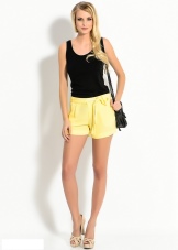 Yellow shorts and a vest are a great option. Such a tandem will look great both with stiletto sandals, and with ballet shoes or sneakers. If necessary, a jeans jacket or jacket can be thrown over the vest, thereby obtaining a new stylish look.
