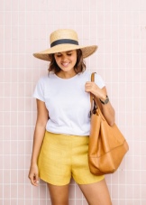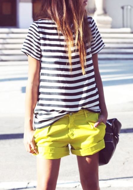 Yellow shorts are most often worn in summer or spring, so we will not consider autumn-winter combinations.