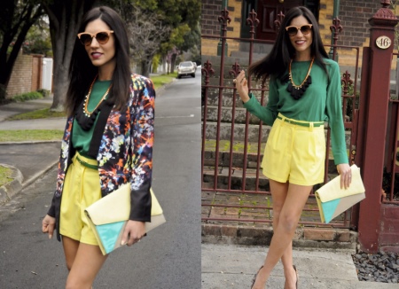 Romantic girls can combine light yellow with pale pink. You will get a great look for a date, especially if you prefer shorts with lace elements.