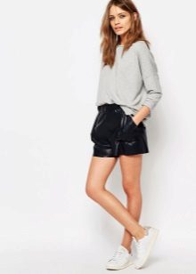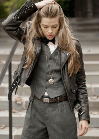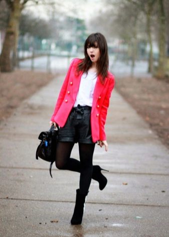 Models made of artificial or genuine leather look great with dark tights or golfs. It’s good if there are lapels on the shorts that demonstrate from the “suede” side. Not only black models are popular, but also shorts made in pastel shades.