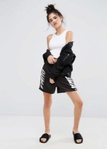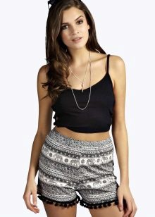 Achromatic color shorts are popular - black and white. They can be either monophonic or combined, for example, in a cage or strip.