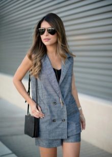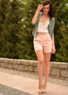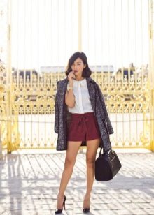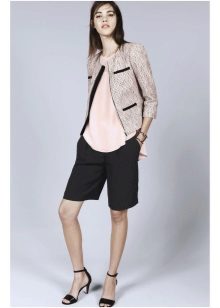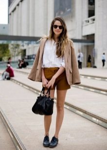 A jacket or jacket will help you create a full-fledged business image. In addition, it is also suitable for a stylish urban look. It all depends on the model of your shorts. In the first case, they should be costume, business. In the second case, a win-win option is a denim model.