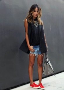 Denim shorts also do not lose their popularity. Micro models are popular with outward pockets and denim shorts to the middle of the thigh. They can be supplemented with various decorative elements, but they should not be artsy and not catchy.