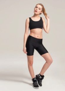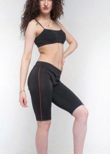 - For fitness. Shorts for aerobic varieties of the variety, whether fitness, Pilates or yoga, should fit your legs tight, but not cause discomfort. You must freely perform any exercises in them, from squats to stretching. It can be pulling models, which additionally contribute to the correction of the figure.