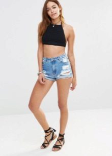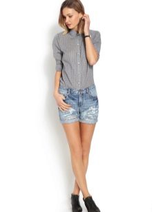 Today, not ordinary denim shorts are popular, but models with a diverse design. It can be torn models, models with lace, spikes, rhinestones, with suspenders and other decorative elements.