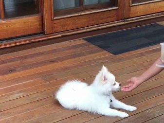 White Spitz can easily carry out any command of his master. However, for this they need to be trained. It is best to start doing this from an early age so that the Spitz can get used to its master faster. To do this, you need to independently not only feed him, but also drink, arrange joint walks, play.