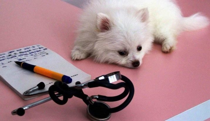 It also often happens that white Spitz has tearing of the eyes. In this case, all the secretions must be removed with a cotton swab dipped in a special solution or ordinary tea leaves.