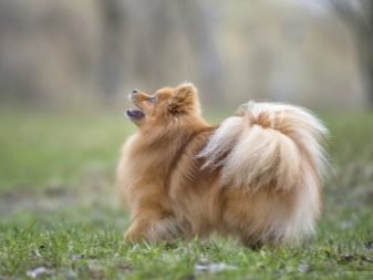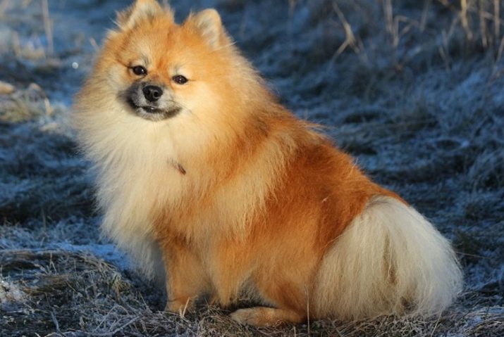 Dogs can be single and dual tonal. All representatives of small German Spitz have a sharp muzzle resembling a fox, small erect ears and black eyes. Spitz is characterized by a raised tail, bent into a ringlet so that it fits snugly against the back. The landing of the body is either square-shaped or straight.