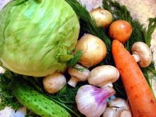 - vegetables in finely chopped form: carrots, beets, zucchini, cabbage, pumpkin, greens;