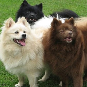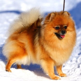 Spitz dogs running on a leash look like fluffy balls. The exterior features of the dwarf, small, wolf spitz and middle spitz are almost the same, their difference is in height and weight. Each of the subspecies is characterized by a long straight coat, in which there is a thick undercoat. The ratio of the length of the body to its growth is 1 to 1. The muzzle of the dog is not characterized by excessive elongation; it can be bear or fox type.