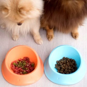 For beginner breeders, difficulties can arise in compiling a ration for a thoroughbred pet that eats in small portions. Dog handlers recommend keeping the spitz drinker clean and regularly filled with clean, fresh water. For a dwarf spitz that weighs 2500 grams, 0.15 liters of water per day is enoughif the conditions do not imply anything unusual. The daily volume of drinking fluid should be increased for puppies, lactating bitches and working pets.