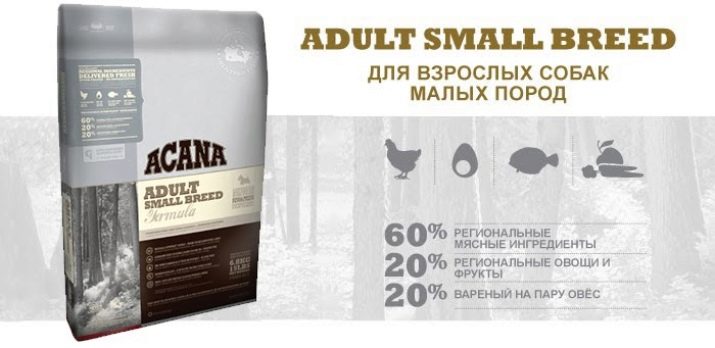 - "Acana Adult Small Breed" - holistic, which contains 60% of animal protein. Quick-type carbohydrates are presented in the form of algae, alfalfa, cranberries. This composition allows you to maintain optimal weight of the pet.