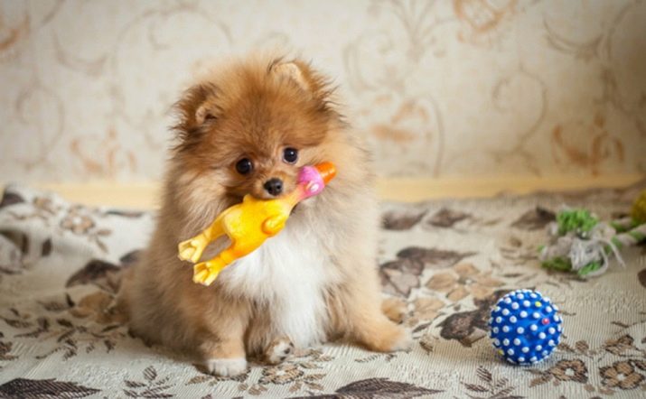 As a toilet, the easiest a shop tray, which is covered with a waterproof diaper. When an animal appears in the house, you should immediately accustom it to the toilet. At first, the owner will have to plant the animal on his own until he gets used to it. Not only puppies of the Spitz need toys, but also adult dogs.