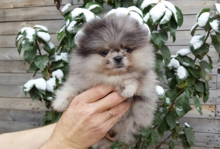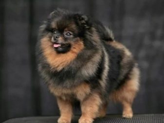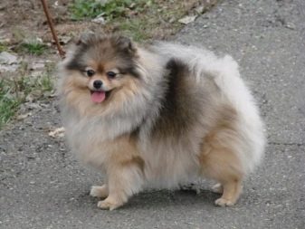 - Pomeranian Spitz brindle and spotted color. The first is characterized by the presence of dark stripes on the back of the animal, and in the second case, the pet's fur is decorated with spots of saturated colors (black, red or gray).
