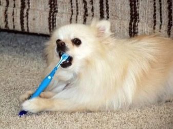 The owner should pay particular attention to the hygiene of the teeth and ears of the Pomeranian spitz. You can clean your ears with cotton buds dipped in a special solution. As for caring for the oral cavity of an animal, today special pastes and toothbrushes for dogs are on sale. Also, the spitz must be cleaned with a piece of gauze soaked with hydrogen peroxide (1%).