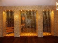 - Filament curtains can not only decorate windows - they do an excellent job with the zoning function of the room, unobtrusively separating one functional area of the room from another. With the help of a searchlight-lamp, they can direct light from different angles, creating special effects.
