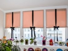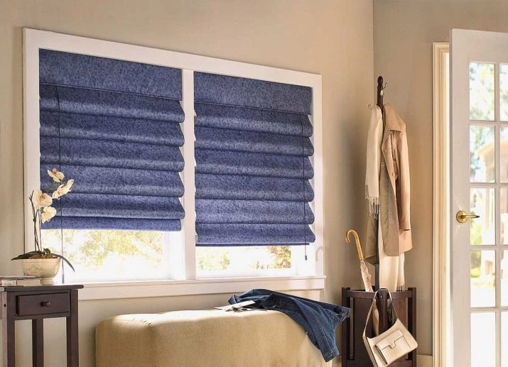 By design, they resemble blinds, but at the same time they consist of fabric forming folds. Unfolded Roman canvases tightly close the window, and in assembled open only part of the window or almost its entire size.