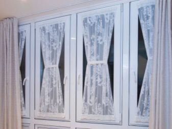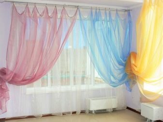 This is a decorative model, which is a bit like a roll, but these curtains are not fixed close to the window. In addition, they are assembled from several sections. They are sewn from weightless fabrics and tied with ribbons.