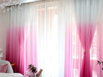 The effect of a smooth transition from one color to another is very popular in the design of rooms. A gradient pattern can be seen on the walls, in the furniture, finally, he switched to the curtains. Such a peculiar “ombre” on the windows looks stylish and with proper use can create interesting visual effects.