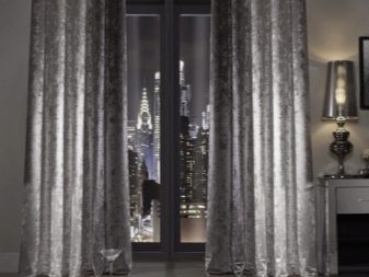 Simple and light, uncomplicated nylon curtains look really stylish and expensive when they start from the ceiling and reach the floor. In this case, you can use the hooks, but you can do without them. Such textiles do not overload the interior, if it already has bright accents. Most effective such air curtains look on the French windows, which suggest glazing along the entire height of the wall.
