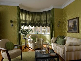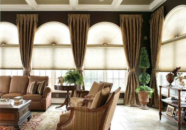 They look perfect on oblong narrow windows. The peculiarity of this style is that the curtain is pulled in the middle with a beautiful pick-up, which can be further decorated.