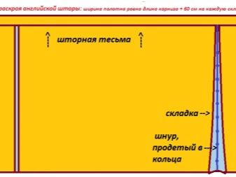 Calculate the length of the curtain according to the formula "window height plus 6 cm." Since natural materials are widely used for the manufacture of English curtains, it is worth recalling the features of working with them. For a better result, sprinkle a cloth from a spray bottle before cutting and gently iron it with an iron.