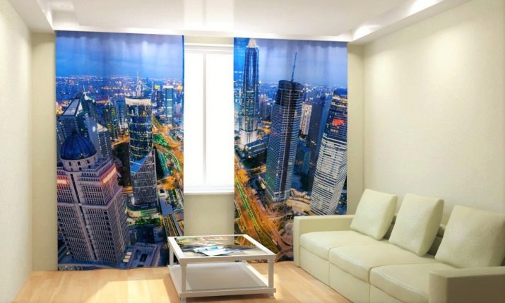 - Photo printing with a 3D effect depicting a city landscape will appeal to urban lovers. However, in the presence of such bright curtains with an active pattern, it is worth choosing wallpapers of more neutral tones so as not to overload the interior.