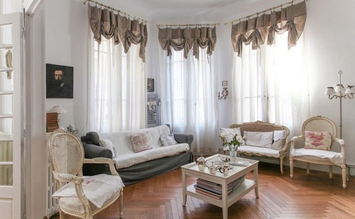 They are distinguished by cascade assembly, that is, the fabric is pinned up due to the ribbons sewn on both sides. This makes them neat and at the same time unusual.