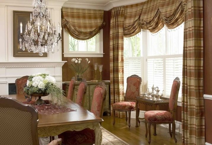 - English curtains in a classic checkered version fit perfectly into the richly decorated interior of the dining room. When assembled, they become an elegant element of decor.