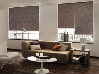 Roll curtains will help to make an aesthetic revolution in the interior of the living room. This is a rather interesting solution, in which an additional part is placed on the first flank and transforms the space beyond recognition.