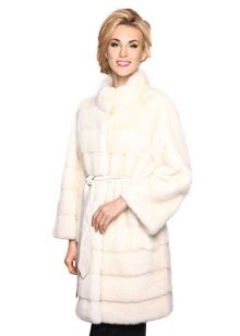 - Fur coats of light shades presented in several colors like peach, pearl, beige and pure white. This version of the fur coat stands out for its special sophistication and romanticism. As a rule, the choice on a light-colored fur coat is left by young girls. Although the classic length models are ideal for any woman.