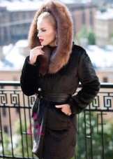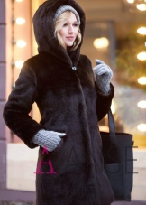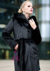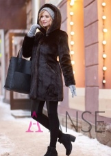 The following current Anse model has a more traditional style. The main massif of the fur coat is made in a mouton of saturated black color, and the hood is made under the measure of a fluffy sable of brown color. The waistline can be emphasized using the wide belt that comes with the kit. Eco-fur itself is made of moisture resistant acrylic. Such a model will be a great addition to an elegant look. The clasp is a classic hidden and comfortable hooks. The product is also equipped with two comfortable pockets and an insulated lining according to Finnish Jobfill technology, which will provide heat even in the most severe frosts.