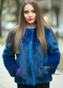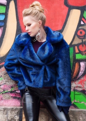 So, girls with a bold sense of style must definitely pay attention to a short fur coat of a very beautiful rich blue color. The main attribute of this model is a volumetric turn-down collar. The absence of a hood is not a problem, because such a collar can easily hide from unwanted precipitation and strong winds. Eco-fur is made of 100% acrylic with a mink article. The straight style of such a fur coat makes it the best option for both feminine and semi-sports style. Two large and reliable buttons act as a fastener.