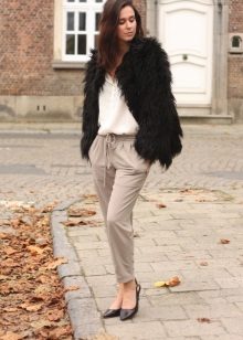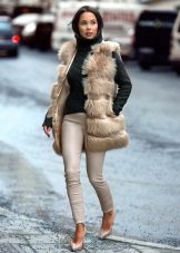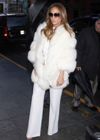 Business women can wear a pantsuit under a fur coat. The main thing is that a jacket or blouse does not peek out from underneath.