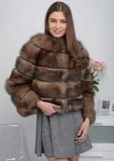The option with a short skirt also deserves attention. Outerwear in its style is more a fur jacket than a fur coat, which is also appropriate for a girl driving. A jacket made of thin transverse strips of fur fastens with a zipper, has a neat small collar and sleeves of a classic length. The ensemble is perfectly complemented by tight black tights and shoes with a steady heel. In general, an image of a purposeful business woman is created.