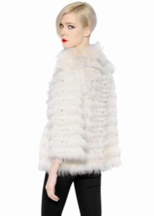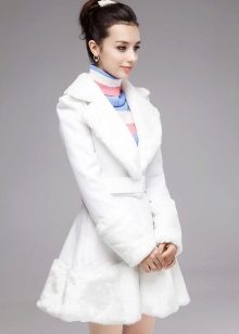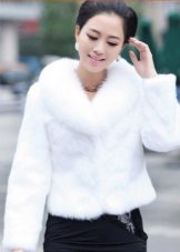This model is suitable for young girls who prefer a modern style of dress. The color of the fur can be different, but the most preferred shades are gray, white and black. A short jacket from a rabbit will warm you in the winter, at the same time it will not grow up.