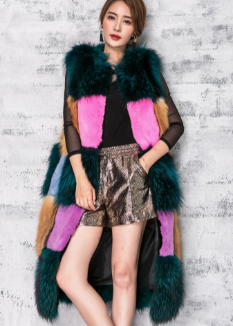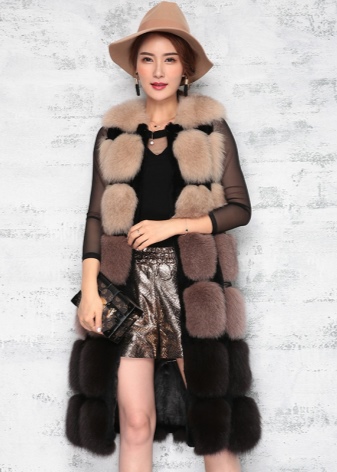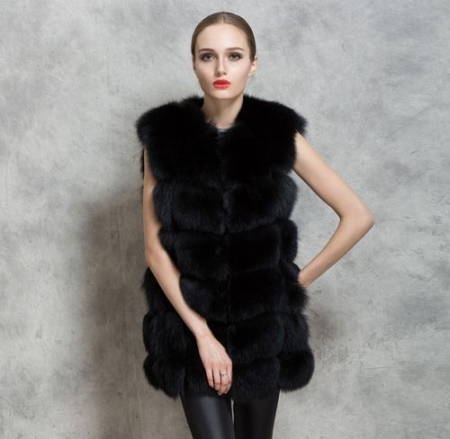 - A style created from individual whole animal skins, for example, Arctic fox or mink. This vest also looks stylish and fashionable. As for color, choose to taste and mood.