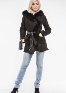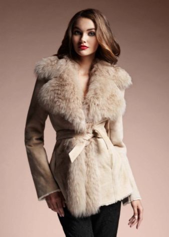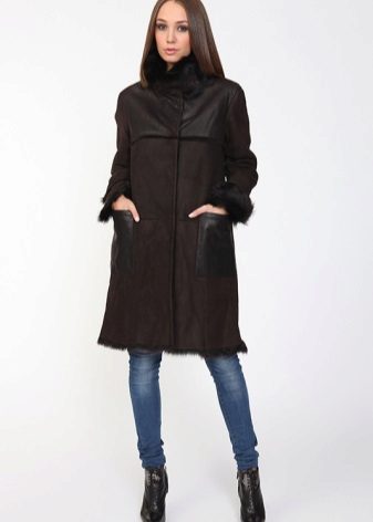 Different fur is used for tailoring sheepskin coats - from inexpensive to very valuable.Sheepskin coats are often made in the combination of several materials, for example, suede or leather, decorated with appliqués, sparkling rhinestones, shiny embroidery, etc.